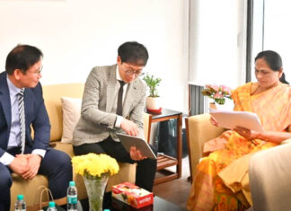 ▲왼쪽부터 김동규 이엠앤아이 사외이사, 고창훈 이엠앤아이 대표, 쇼바 카란들라제 장관(이엔앤아이 제공)이엠앤아이는 인도 정부의 쇼바 카란들라제(Shobha Karandlaje)와 만나 차세대 소재 개발 기술과 로봇 자동화 플랫폼을...